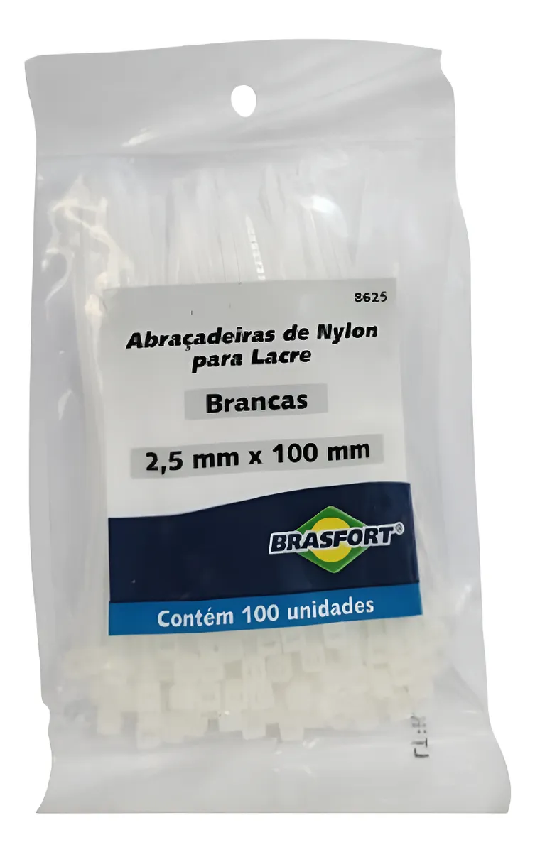 Abraçadeira Nylon 100×2,5mm Branca 100 Unidades – Brasfort