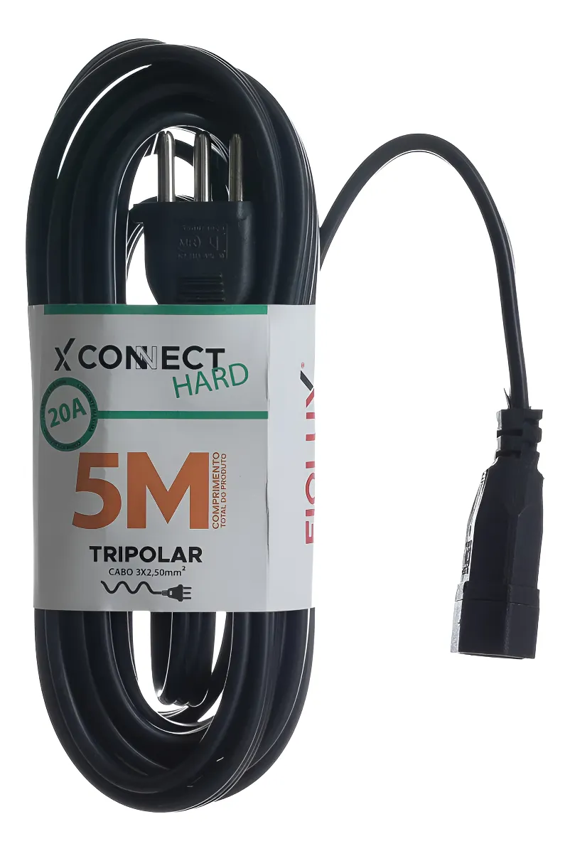 / Extensão Prolongadora Connect Hard 2P+T 20A 5Mt Preto – Fioxlux