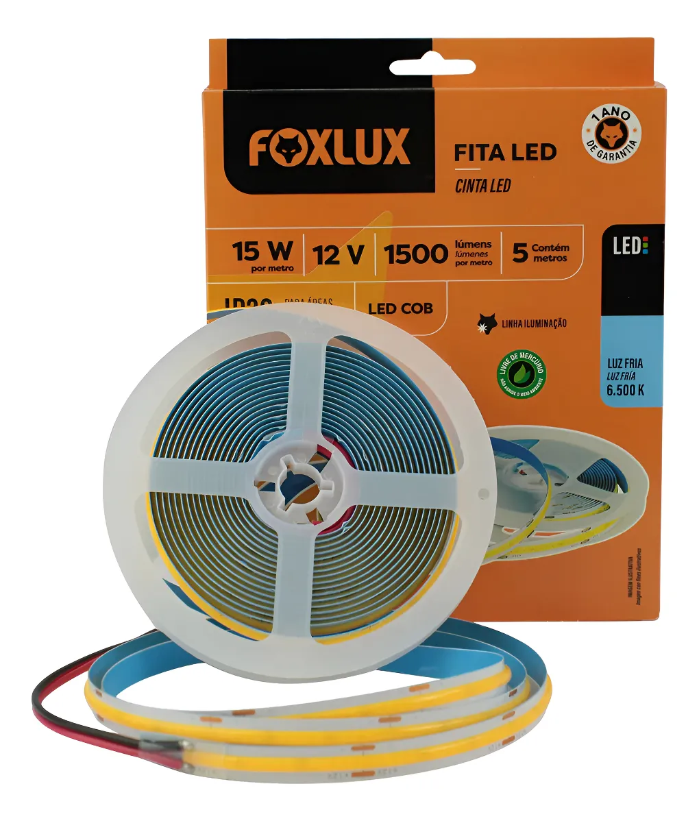 Fita de LED COB 15W 12V 6500K Com 5 Mts IP20 – Foxlux