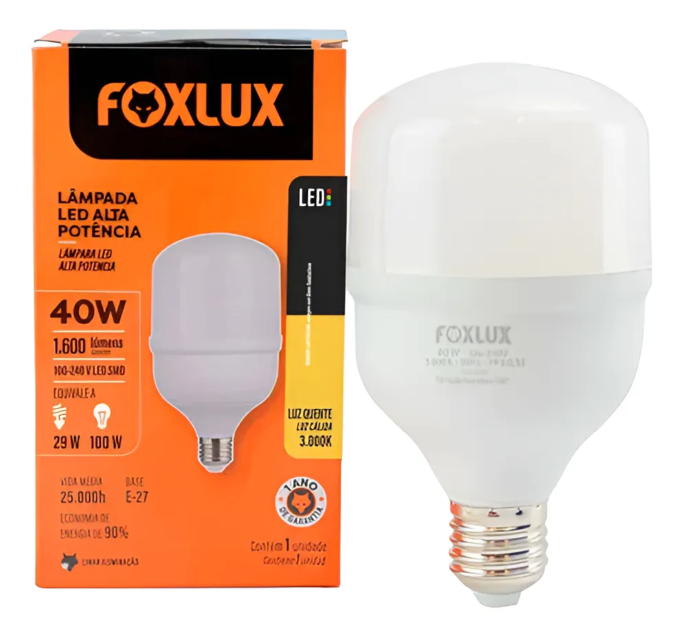 / Lâmpada de LED Bulbo 40W 3000K – Foxlux