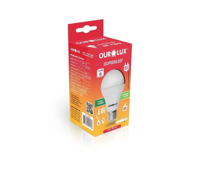 Lâmpada De Led Bulbo 6w Branco – Frio (6500k) – Ourolux