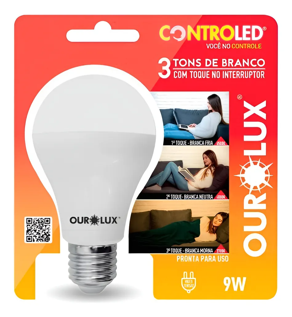 / Lâmpada de LED Controled 9w 3 Tons Luz Branco – Ourolux