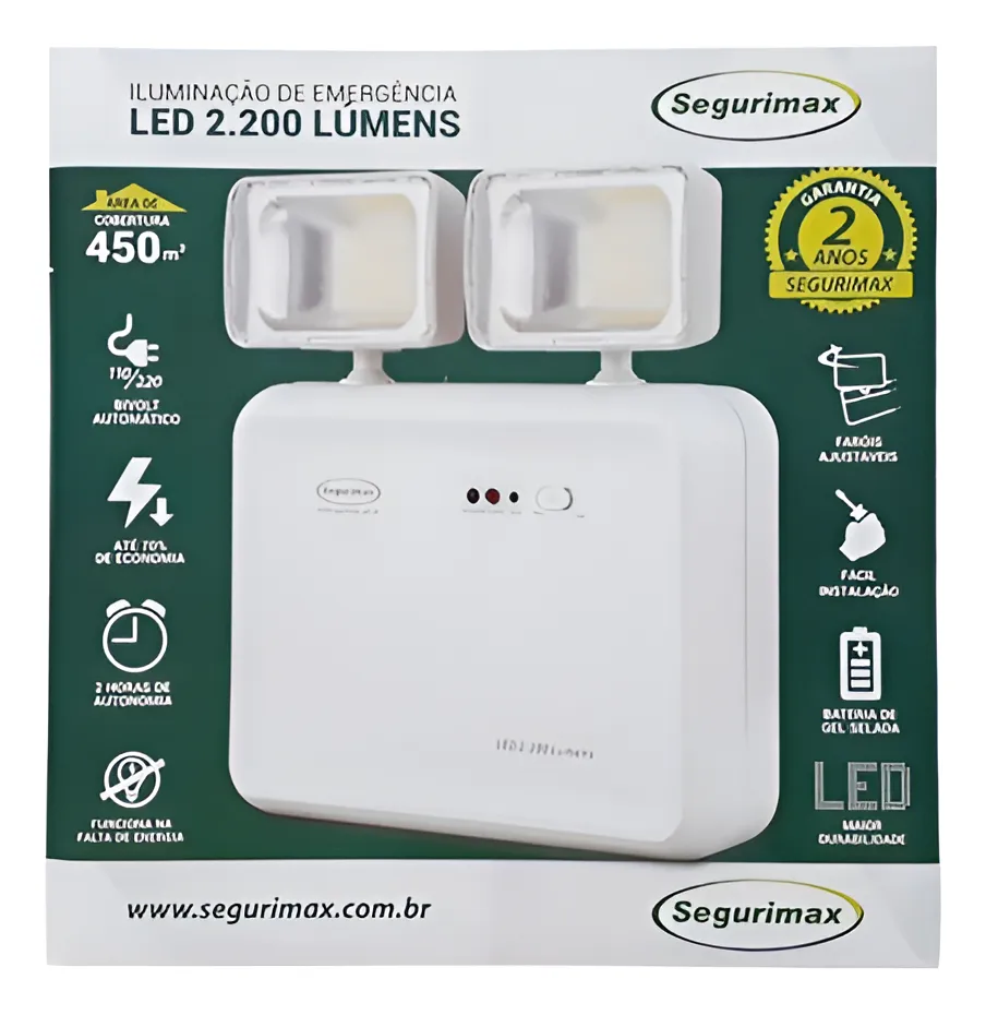 / Luminaria de Emergência 2200LMS Bivolt 2 Farois – Segurimax