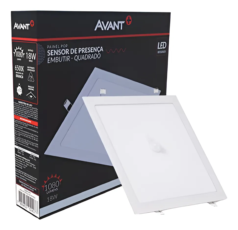 Painel de LED Com Sensor Embutir Quadrado 18W 6500K – Avant