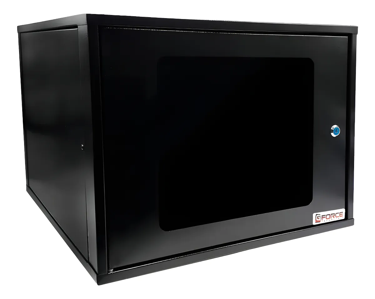 / Rack Parede 19 8Ux570mm Com Porta de Acrilico Montado Preta Gforce