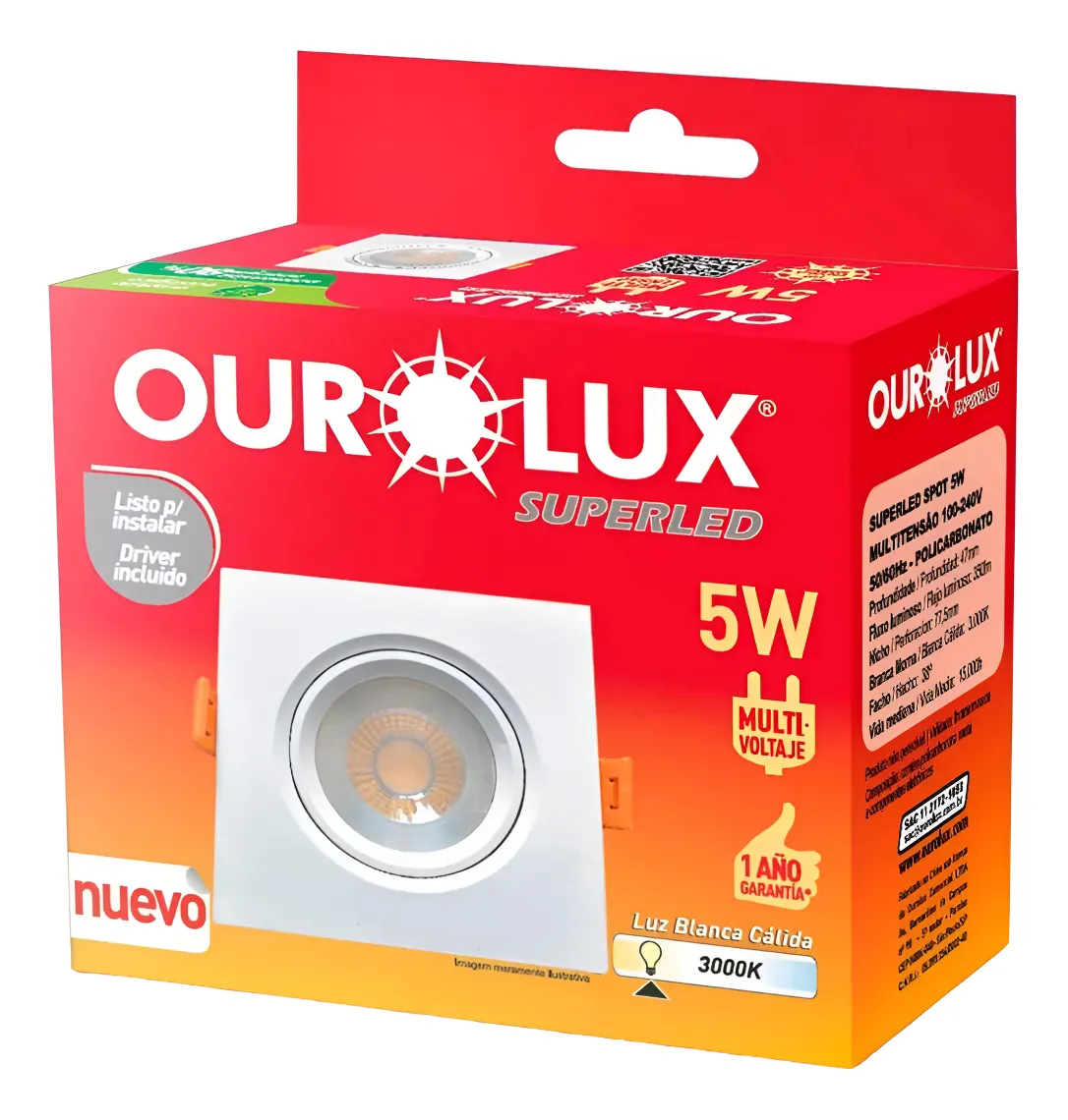 / Spot de LED Embutir Superled Quadrado 5W 3000K – Ourolux