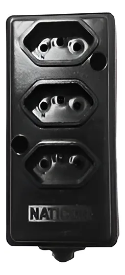 / Tomada Barra Tripla 2P+T 10A Preta – Naticon
