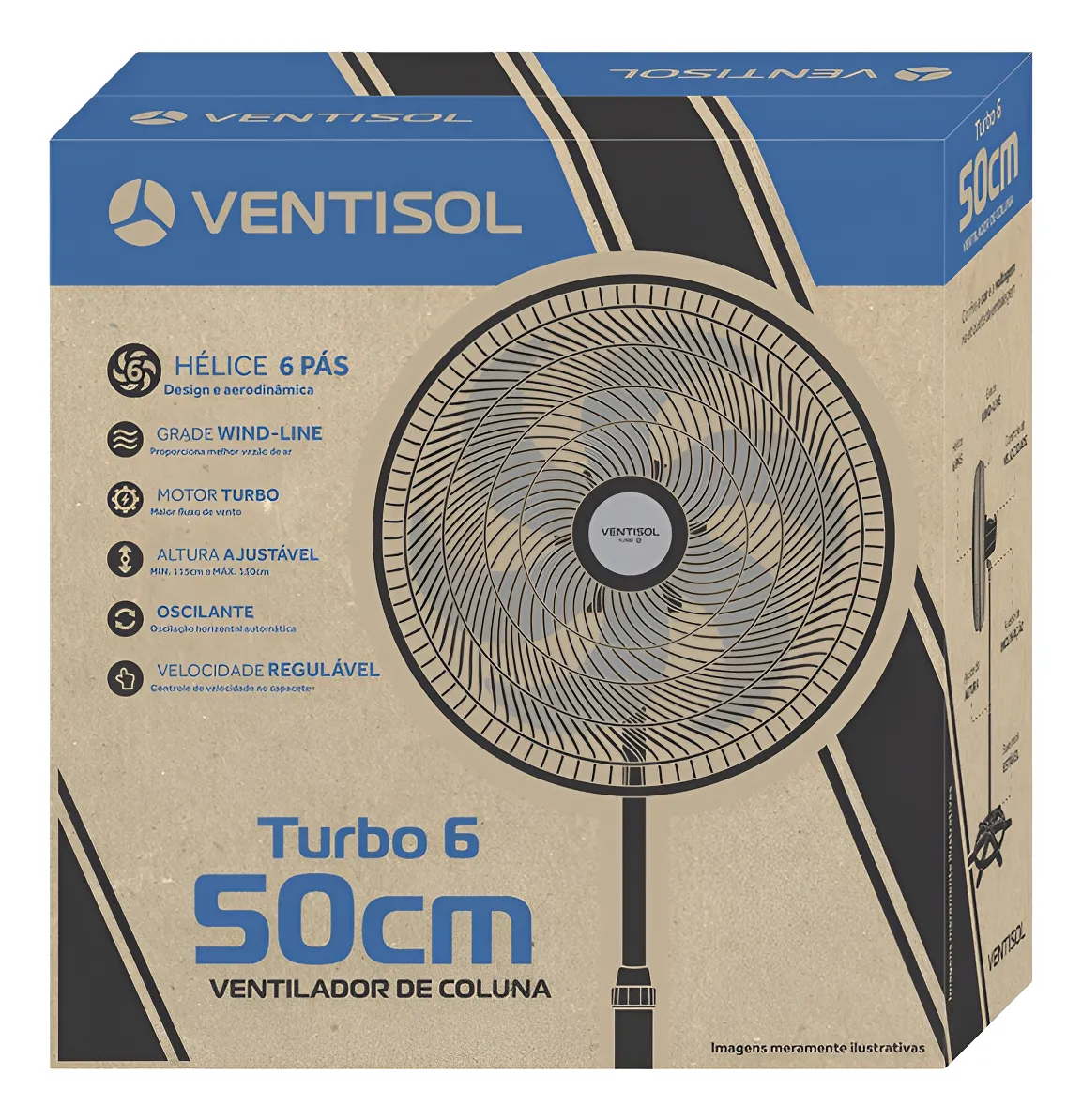 / Ventilador de Coluna Turbo 6P 50cm 110V Cinza – Ventisol